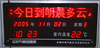 主要性能特點:1、該電子顯示屏選用工業(yè)級的單片機與GSM通訊模塊電路設計,性能穩(wěn)定可靠,操作簡便。2、選用鋼化玻璃面塊和懸掛式設計,外觀華麗且易于安裝。3、電子顯示屏具有短信息顯示、時間顯示和實時溫度顯示功能。收到的短信息可多條自動循環(huán)地顯示在漢字跑馬燈顯示屏上。4、內置高精度溫度傳感器,實時采集和顯示當前環(huán)境溫度。5、內置高精度時鐘,日誤差不超過一秒,可以按鈕自動調控。6、斷電時,系統(tǒng)自動保存所有信息并繼續(xù)走時,再次來電時系統(tǒng)自動恢復信息顯示。7、系統(tǒng)內部共6條短信儲存區(qū), 400多個漢字已循環(huán)走動的方式可同時顯示在顯示屏上。8、該電子顯示屏可為各類氣象信息提供不同提示信號音,其他短信發(fā)送到電子顯示屏上以四次提示音,提醒用戶有新的信息到來,氣象警報發(fā)送到電子顯示屏上,******次是十次提示音,隔半小時、一小時各提醒一次,每次提示音五次。9、信息語音報讀。